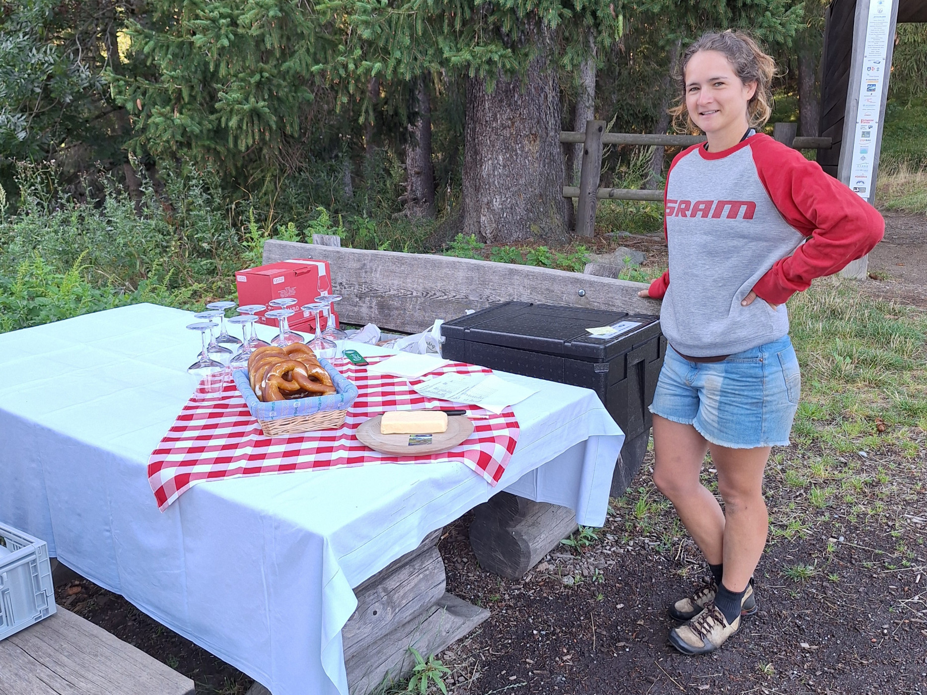Parallel dazu werden die Läufer von der Gruppe der Degustationswanderer mental unterstützt. Diese starten vor der Läufergruppe am gleichen Weg und werden nach und nach von den Läufern eingeholt und dabei kräftig angefeuert. Die Distanz beträgt ca. 9.5 km und 630 Höhenmeter. Die Wanderer benötigen je nach Tempo ca. 3 - 4 Stunden bis nach Binn.