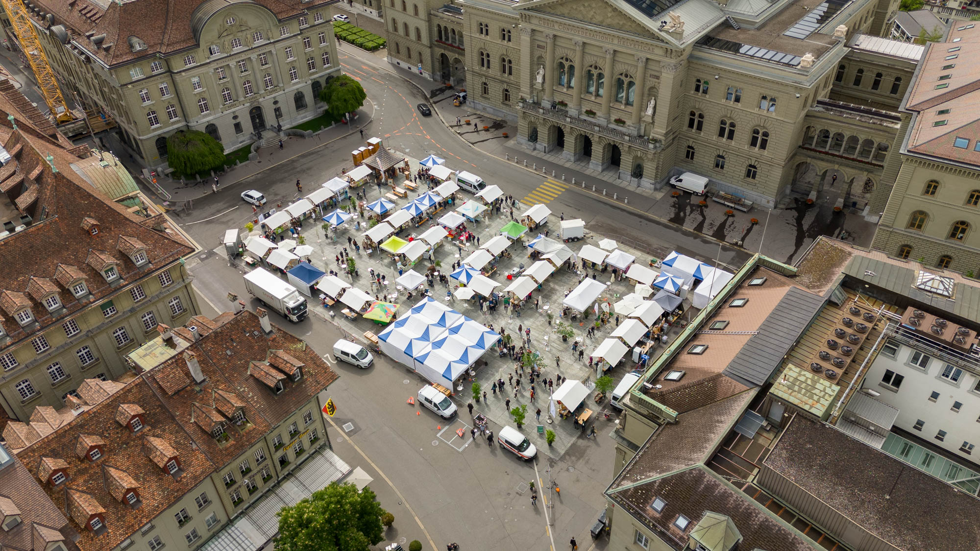 Die Schweizer Pärke präsentieren sich gemeinsam auf dem Bundeshausplatz in Bern.