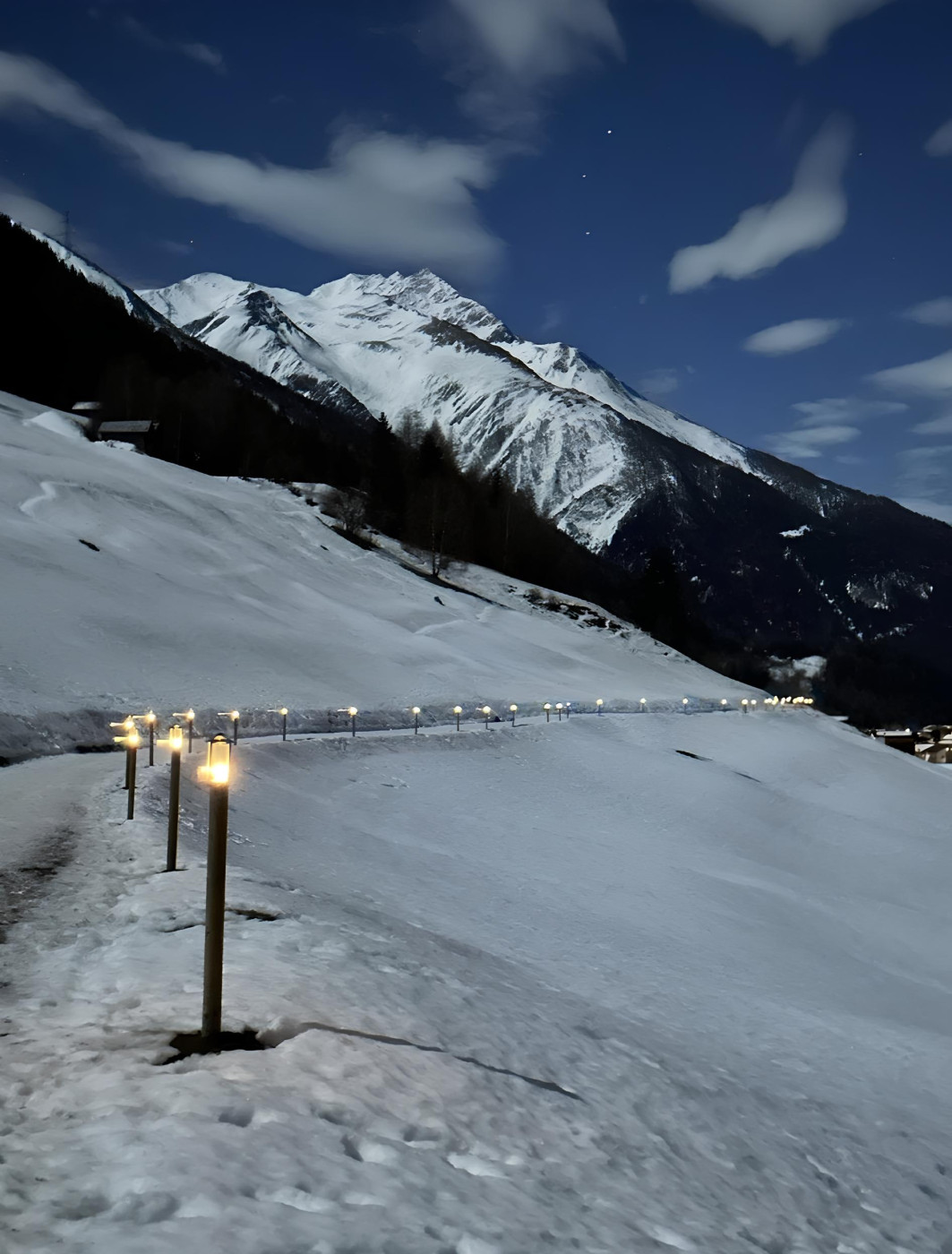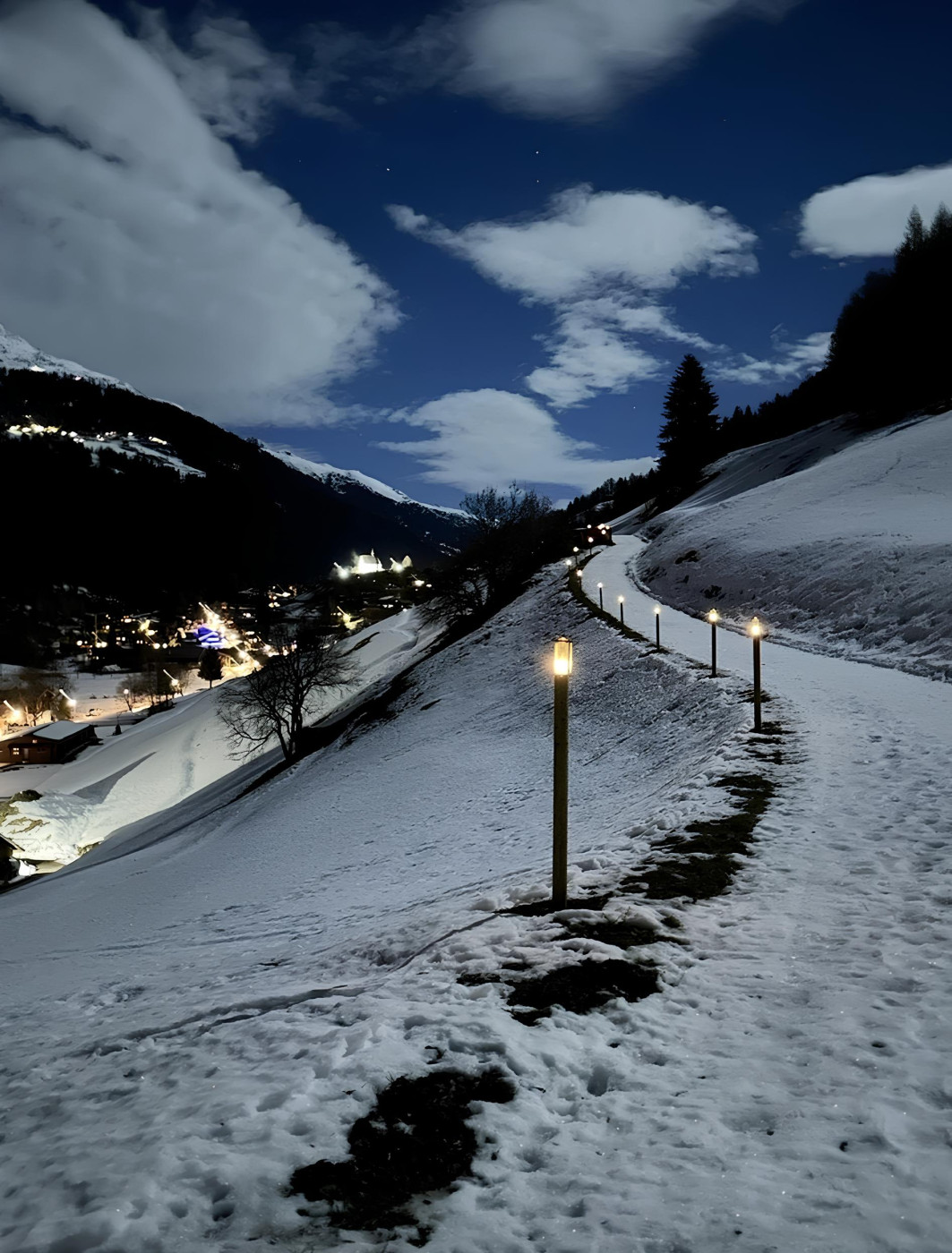 Entlang vom Panoramaweg von Ernen nach Mühlebach erhellen abends Laternen den Weg und laden so zu einem besinnlichen Spaziergang ein.