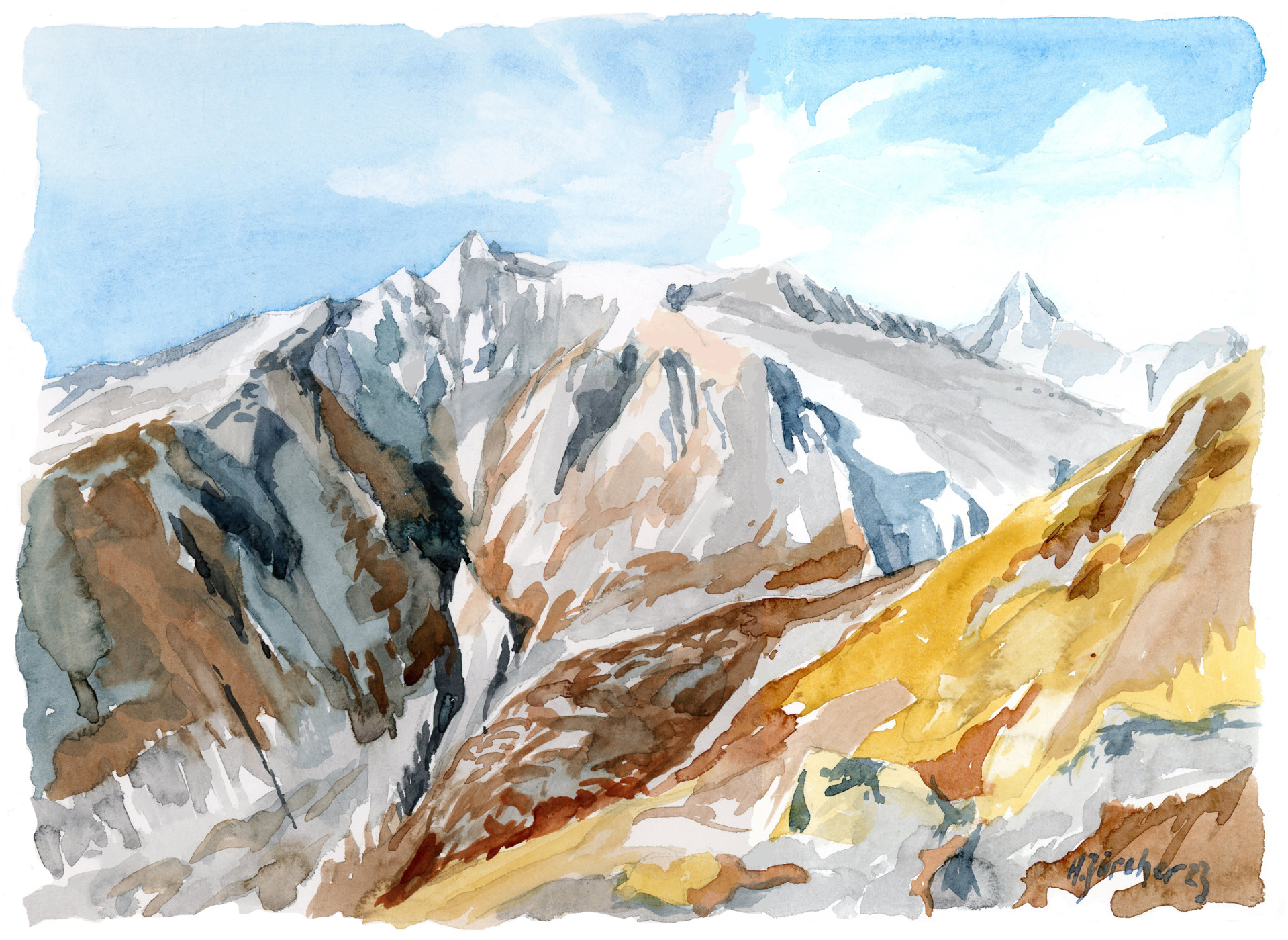 Im Gespräch mit dem Grafiker und Bühnenbildner Heinz Zürcher entspann sich vor zwei Jahren die Idee, seine Arbeiten zum Thema „Poetische und märchenhafte Landschaften von Aletsch, Fischertal und Goms“ zu widmen, sich während seiner Erkundungstouren dem Typischen und Besonderen der Landschaft zu nähern und in seinen Aquarellen zu beschreiben.