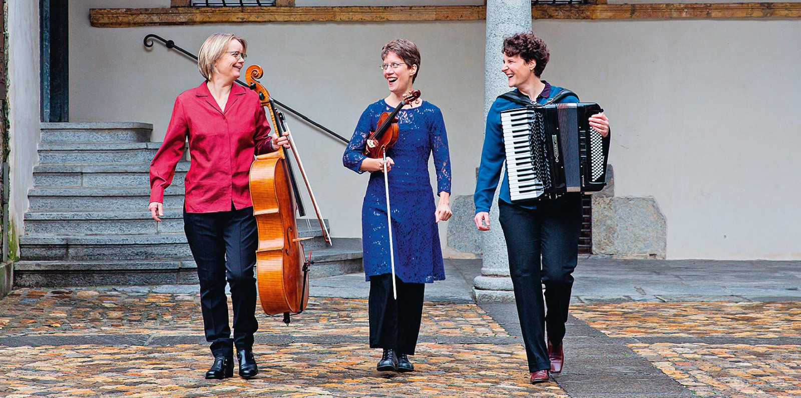 Judith Escher (Violoncello), Désirée Pousaz (Violine) und Bettina Herzog (Akkordeon)