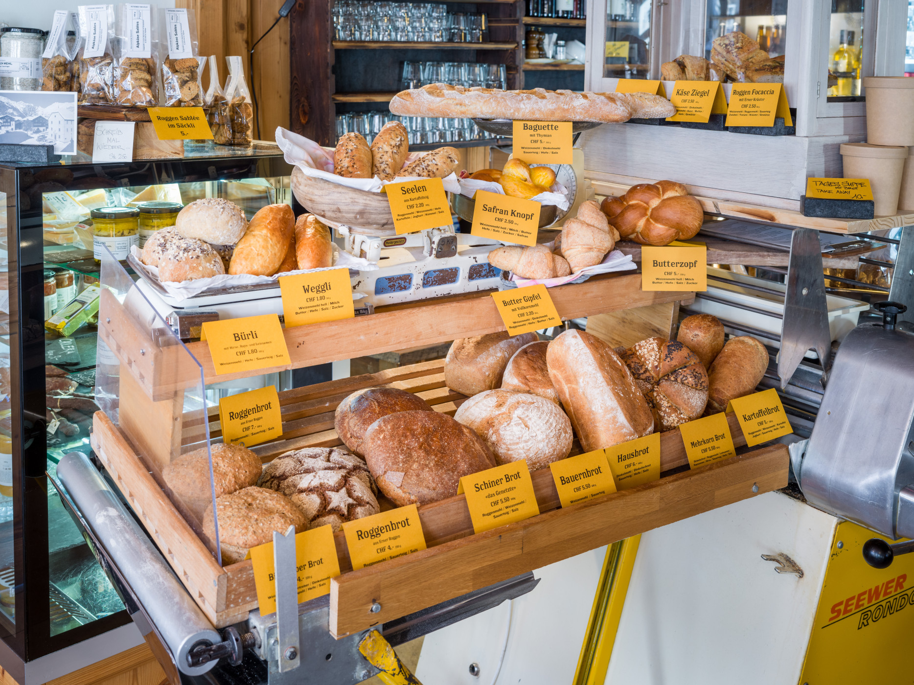 Klaus Leuenberger Speisewerk offre un assortimento di specialità a lunga conservazione preparate con cura in una cucina che ha saputo guadagnarsi una menzione nella guida Gault Millau.